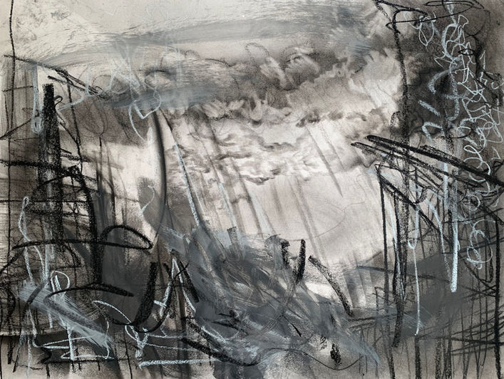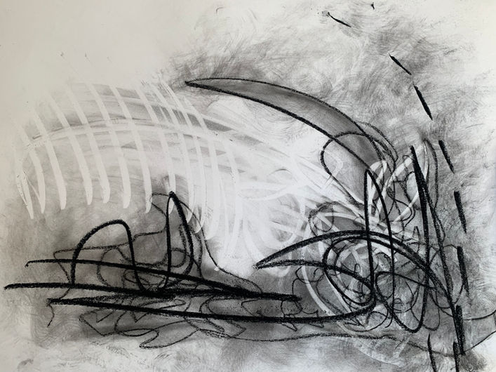 The Directional Series is a collection of charcoal works, born from intuitive and bodily drawing processes. The intention behind the series is to engage the subconscious, facilitating a conversation between the body and the act of creation, unimpeded by doubt or preconceived notions of self-image.